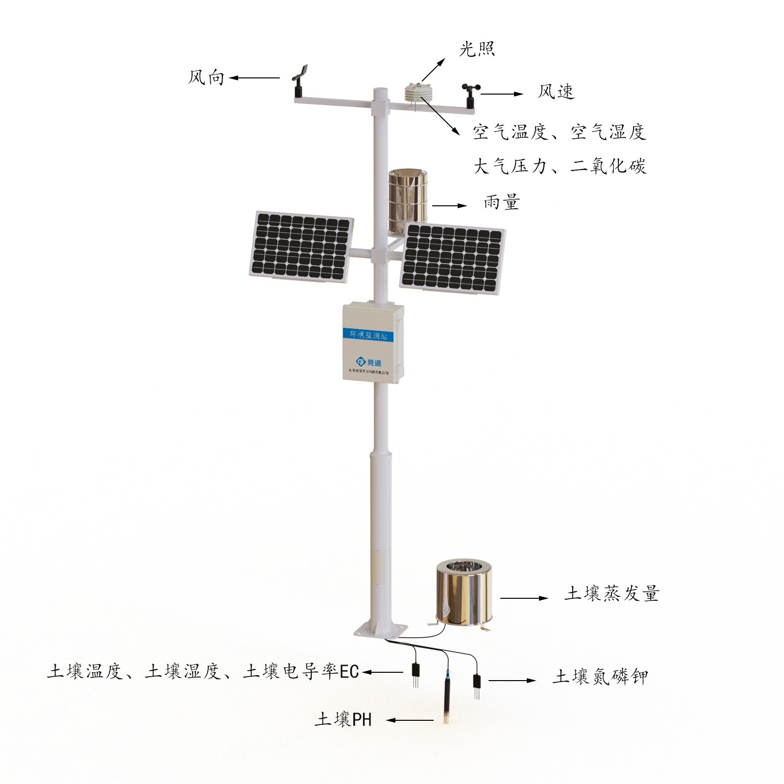该设备由气象传感器,采集器,太阳能供电系统,立杆支架,云平台五部分组成。免调试,可快速布置,广泛运用于气象、农业、林业、科学考察等领域。