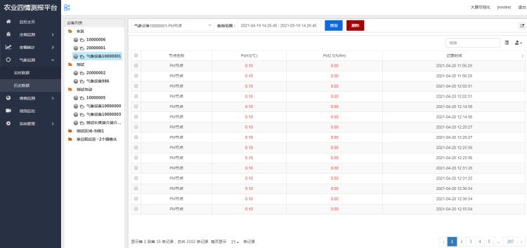 农业四情测报平台是集虫情、气象、墒情监测为一体在线监控平台。虫情监测具有Al害虫自动识别、远程实时查看虫情、虫情在线分析、害虫种类自动识别、区域虫情统计、虫情变化趋势分析、设备监测等功能。气象监测具有远程实时查看气象、在线分析气象历史数据的功能。墒情监测具有远程获取土壤墒情(如土壤温湿度、水分、PH)数据、在线分析土壤墒情历史数据的功能。